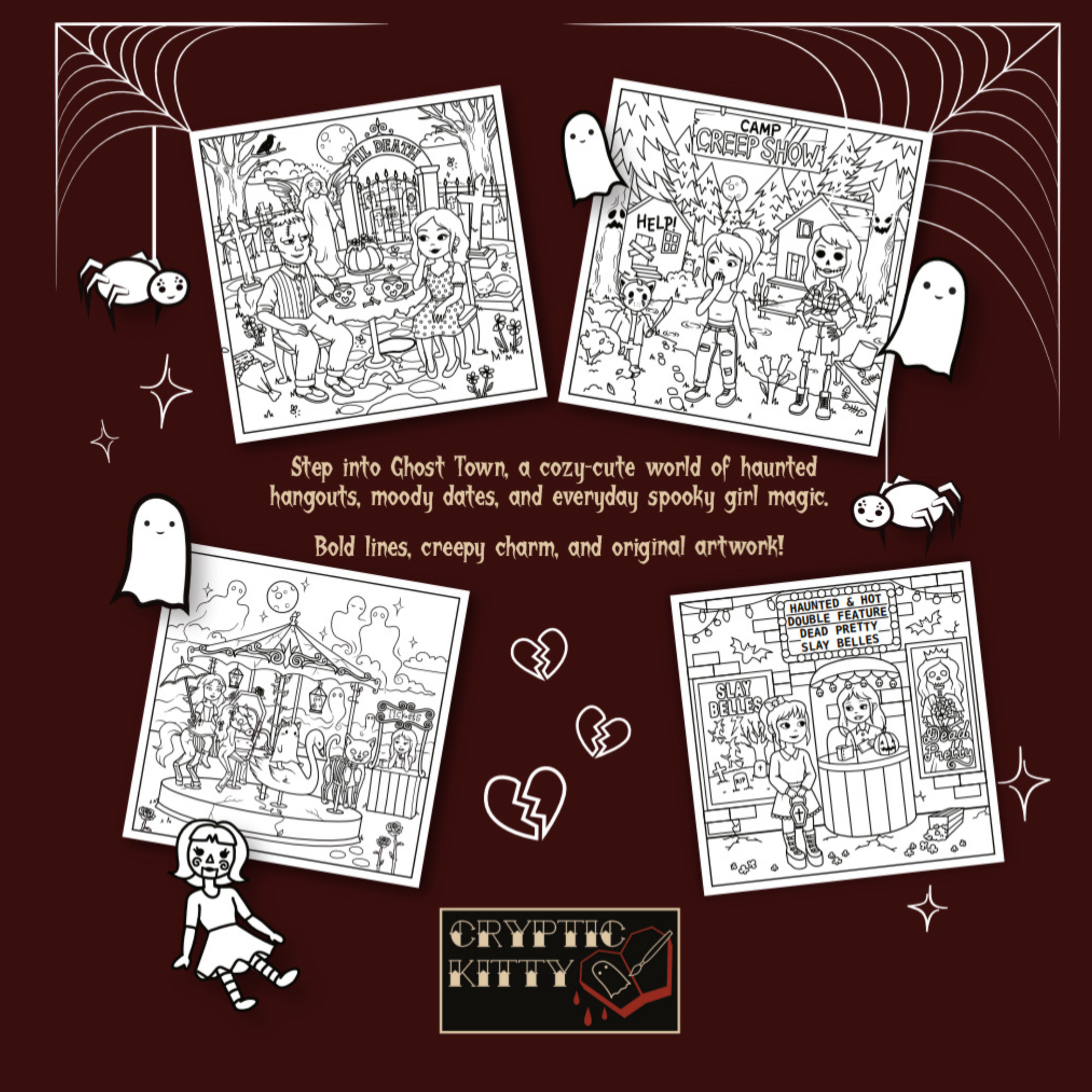 Ghost Town Girls: Haunting Season isn’t just another coloring book — it’s a whole universe built for the girls who crave something darker, cozier, and a little bit unhinged.